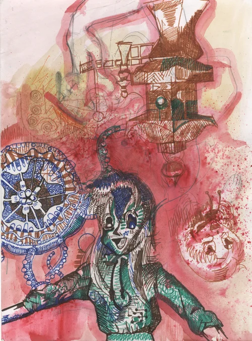 2008. Colored pencil, chalk pastel, watercolor and pen and ink on paper.